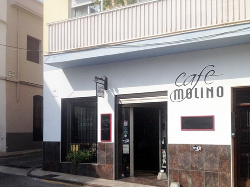 Café Molino está situado en una zona tranquila, en la Plaza Ganguis, en el corazón del casco antiguo de Oliva.