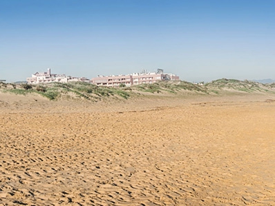 - Tipo de arena: grano fino y dorado