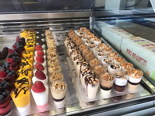 Ademas de helados ofrecemos una gran variedad de batidos, en verano tenemos granizados echos también artesanalmente y también podemos ofrecerle una variedad de tartas heladas y mas delicatessen a todo eso pueden añadirle un buen café italiano o un refresco para lo mas sedientos.